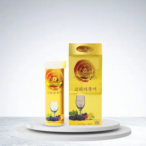 ผลิตภัณฑ์เสริมอาหาร รูปแบบเม็ดฟู่ ละลายน้ำดื่มง่าย สารสกัดจากแบล็คราสเบอร์รี่เกาหลี (Bokbunja) + ราสเบอร์รี่ + มะนาว + วิตามินและกรดอะมิโนหลากชนิด + คอลลาเจน + ไฟเบอร์