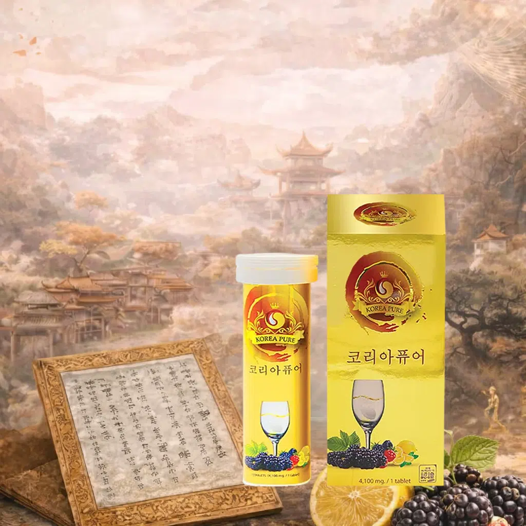 ผลิตภัณฑ์เสริมอาหาร รูปแบบเม็ดฟู่ ละลายน้ำดื่มง่าย สารสกัดจากแบล็คราสเบอร์รี่เกาหลี (Bokbunja) + ราสเบอร์รี่ + มะนาว + วิตามินและกรดอะมิโนหลากชนิด + คอลลาเจน + ไฟเบอร์
